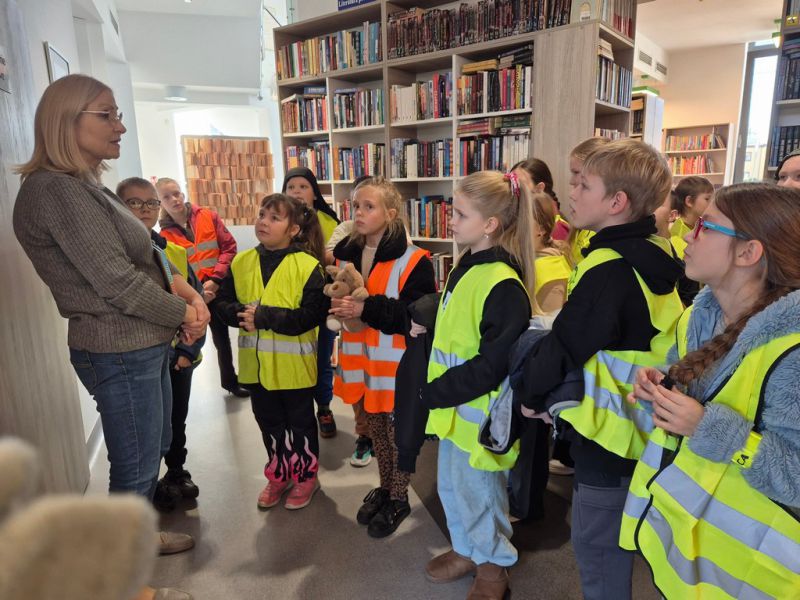 W ramach ogólnopolskiej akcji „Odblaskowa szkoła”, uczniowie klasy 3b, ubrani w kamizelki odblaskowe wybrali się na spacer do Gminnej Biblioteki Publicznej w Gogolinie.