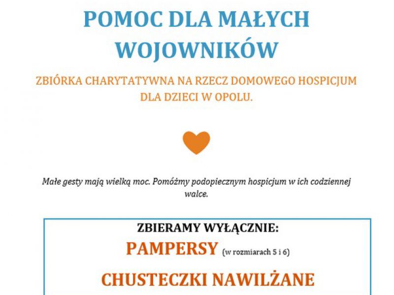 Z okazji zbliżającego się Dnia Dziecka nasza Dwójka łączy siły i organizuje zbiórkę charytatywną darów na rzecz Domowego Hospicjum dla dzieci w Opolu. Ta wyjątkowa placówka codziennie dba o komfort i uśmiech najmłodszych pacjentów, a my możemy im w tym realnie pomóc.