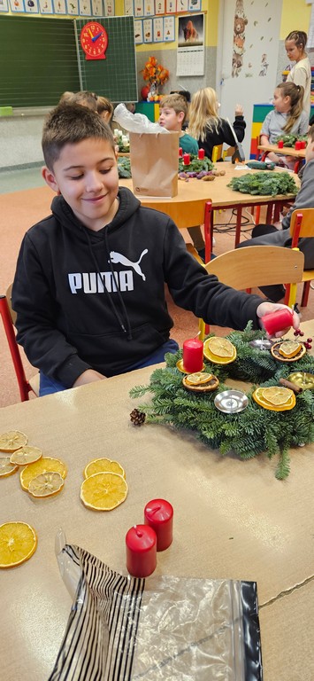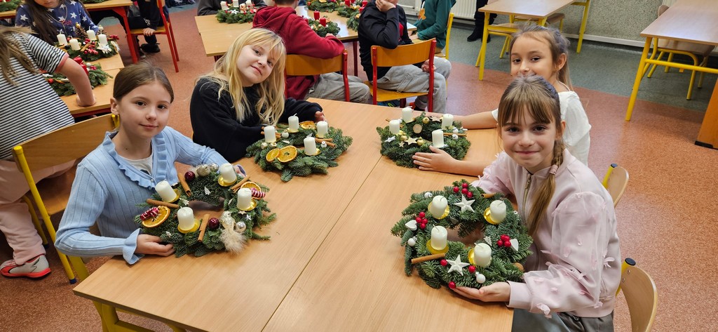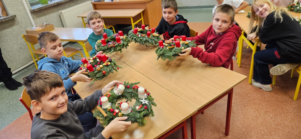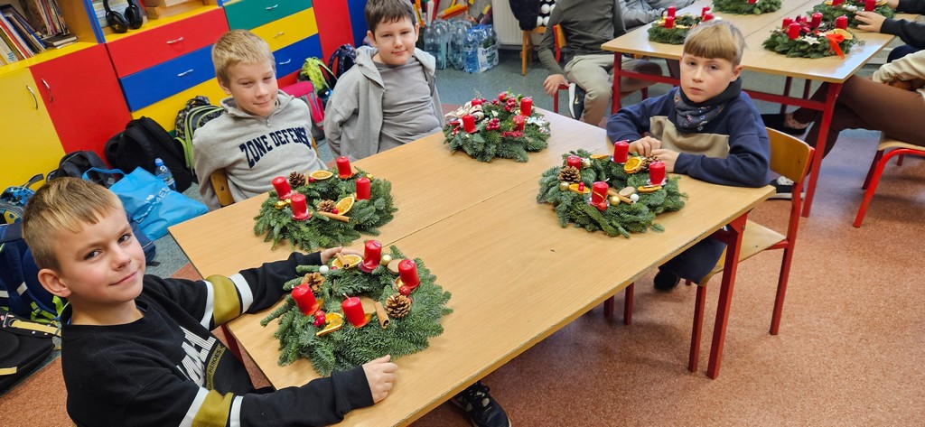 Uczniowie klasy 3a z zaangażowaniem i radością rozpoczęli przygotowania do nadchodzącego okresu Adwentu. W ramach zajęć plastyczno-technicznych trzecioklasiści wykonali własne wieńce adwentowe, korzystając z materiałów zakupionych dzięki zdobytej wcześniej nagrodzie.