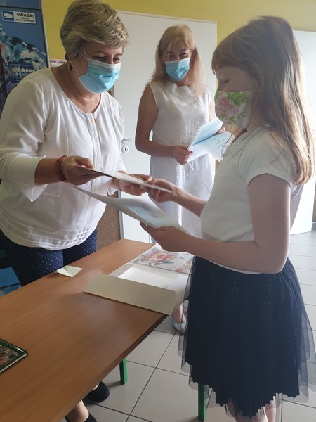 W czasach pandemii niestety nie było możliwe zorganizowanie tradycyjnej akademii. Mimo to dyrektor naszej szkoły, pani Renata Kochanowska zapewniła uroczystą oprawę wręczenia świadectw, na które uczniowie w obecnej sytuacji z niecierpliwością czekali. Choć na chwilę mogli zobaczyć rówieśników i nauczycieli.